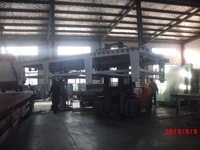 2013年5月5号(胶南)青岛奥星玻璃有限公司26吨钢化炉吊装拖拉就位现场。